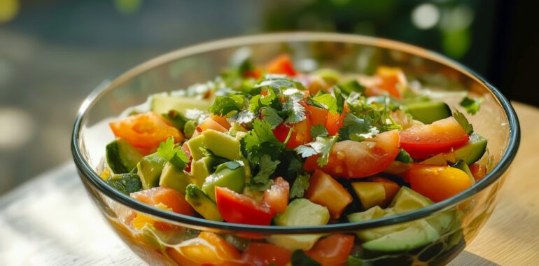 Maximizing the healthy fats of avocado while using vegetables as the “scoop” to keep the meal low-glycemic.